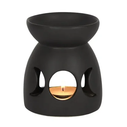 This black ceramic oil burner features a cutout triple moon design and a cool, matt finish. Compatible with both fragrance oil and wax and perfect for Halloween or spooky decor