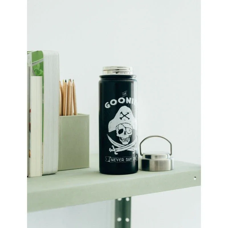 The Never Say Die Bottle with the Goonies skull is a high-quality bottle, made of stainless steel, with special resistance to knocks and possible dents.