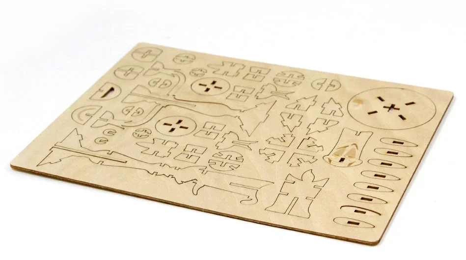 Laser-cut, FSC®-certified wood sheet with easy-to-assemble pieces