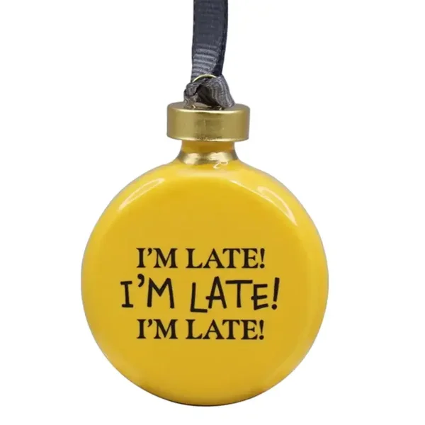 On the back reads the text 'I'm Late! I'm Late! I'm Late!'