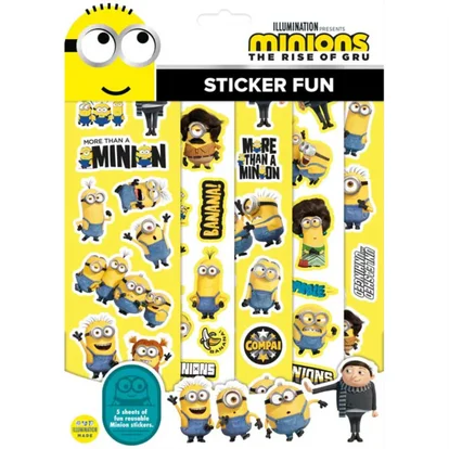 The mischievous Minions and Gru are back in their latest animated adventure set during the awesome 70s! - Sticker Fun 5 sheets of reusable Minions stickers. Excellent for any fan of the Minions